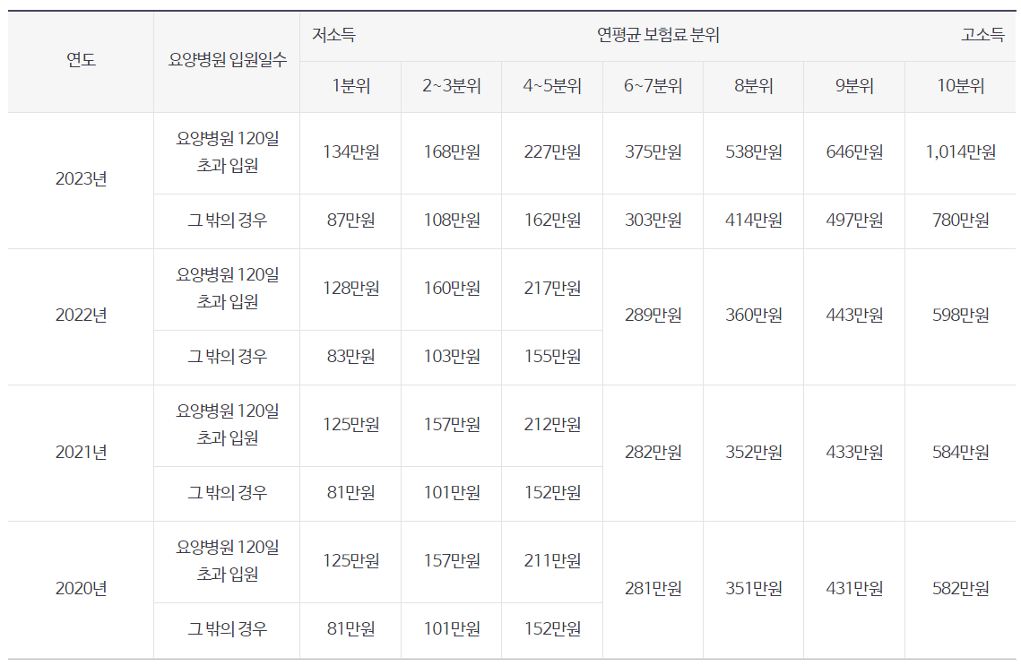 의료비 환급금 대상자는 본인부담상한액을 소득 분위별로 구분하여 확정합니다. 연도별로 소득 분위별 구간이 낮으면 더 혜택을 받을 수 있고 실제로 환급대상자 중 85%가 소득의 하위 50%이며 총지급액의 70%를 차지한다고 합니다.