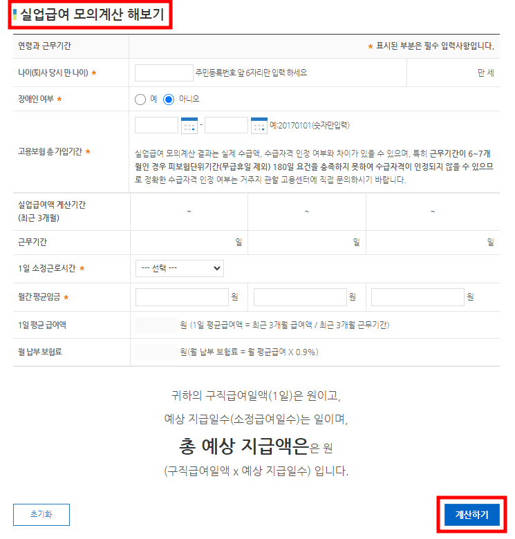 실업급여 모의계산