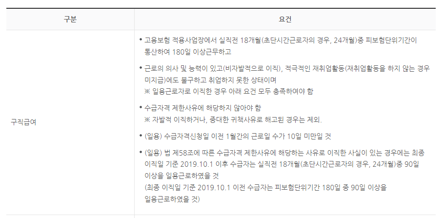 구직급여의 소정급여일수 이직일 2019.10.1이전