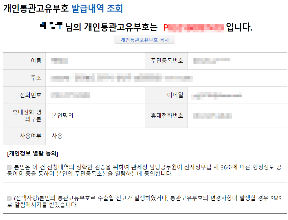 한 번 부여받은 부호는 같은 번호로 계속 사용이 가능하며 개인통관고유부호를 잊어버린 경우 관세청 시스템에서 언제든지 조회할 수 있습니다.