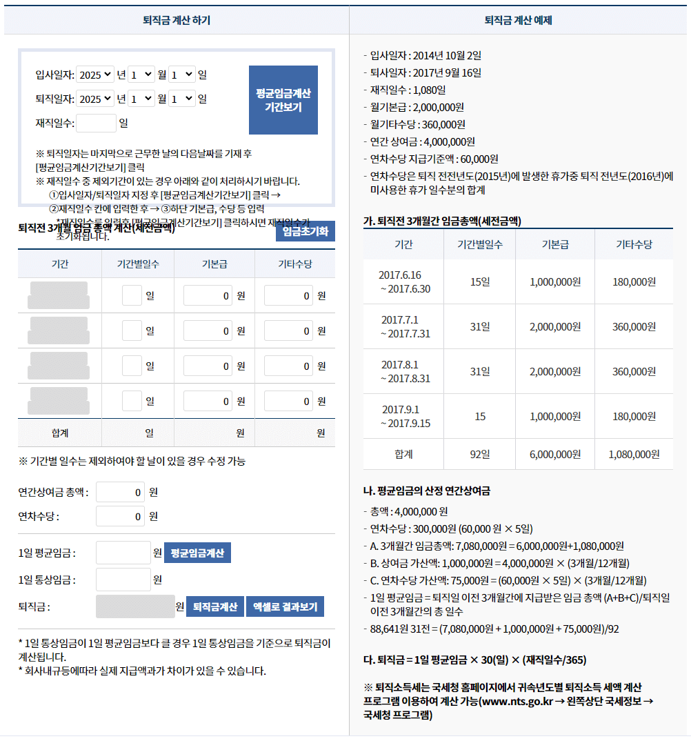 실제로 회사에서 지급받고 있는 월급과 계속근로일수가 며칠인지 알면 계산할 수 있습니다.