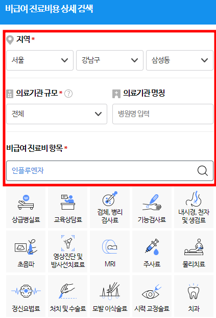 독감 백신 비용 조회