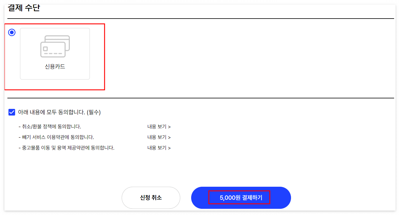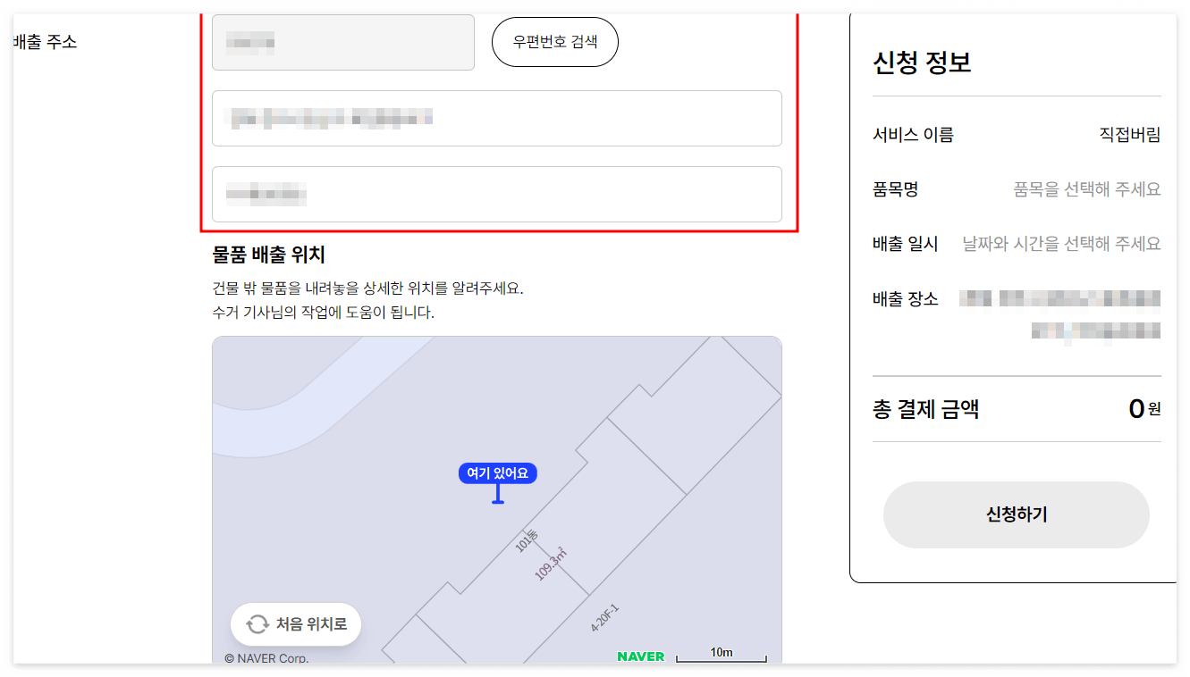 배출일시를 입력하고 신청하기 누르면 신용카드 결제창에서 해당 금액을 결제하면 됩니다.