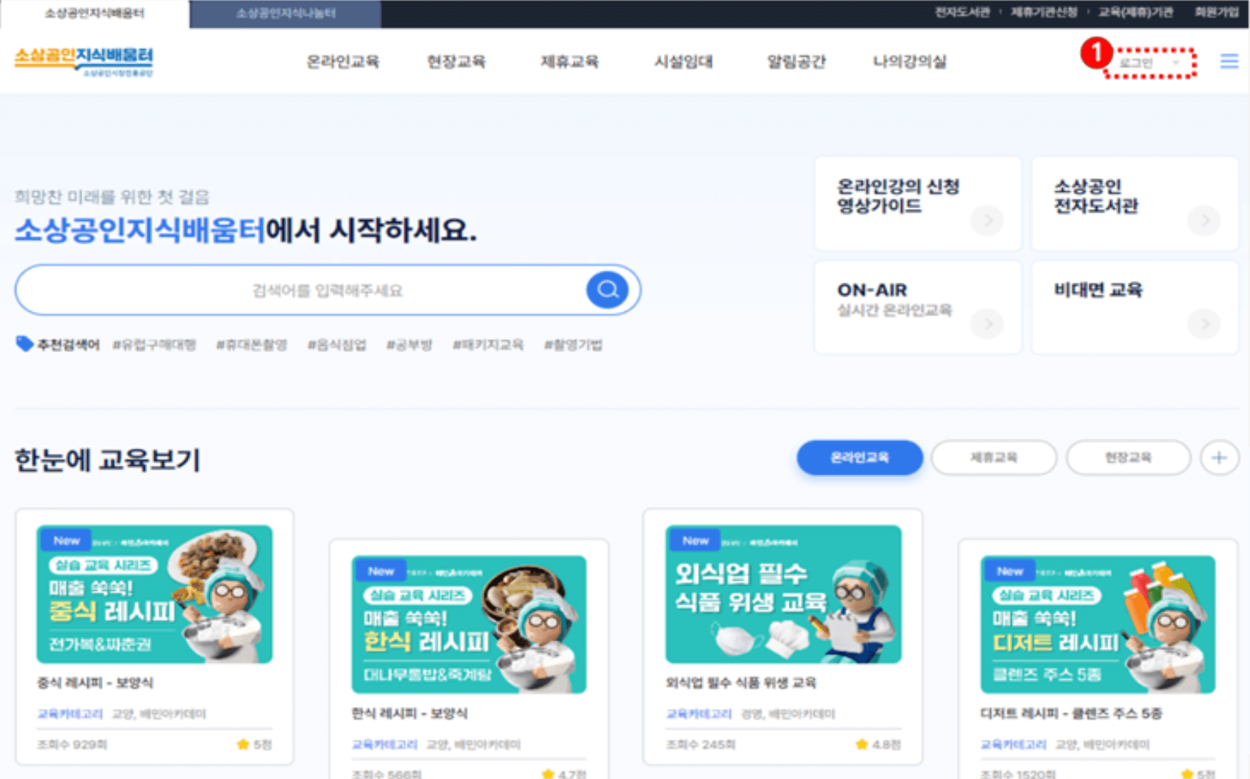 ①지식배움터 상단의 로그인으로 방문 이력을 남겨야 모바일 로그인이 가능합니다.