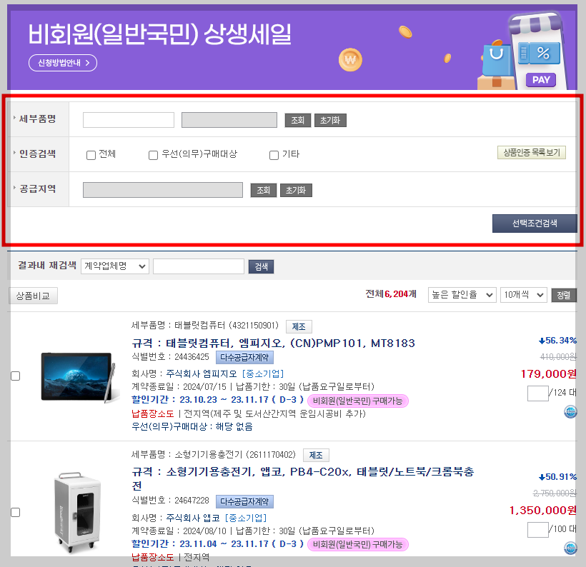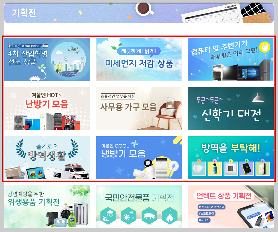 나라장터 상생세일이 아니더라고 평소 기획전에서 관심 있는 물품을 확인할 수 있습니다.