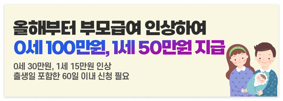 2024년 1월부터 영아를 키우는 가정의 경제적 부담을 줄이고자 부모급여 지원금액을 대폭 인상하여 지원합니다.