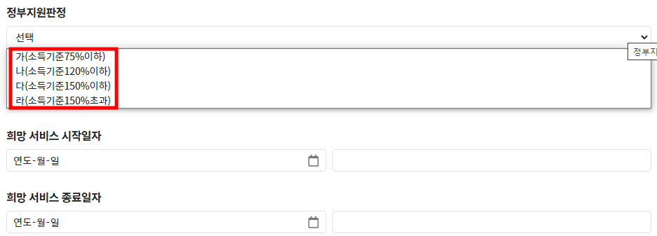 정부지원시간 미차감 시 기본요금의 50%는 정부에서 지원이 되며 가구유형별 소득기준에 따라 요금이 확정됩니다.