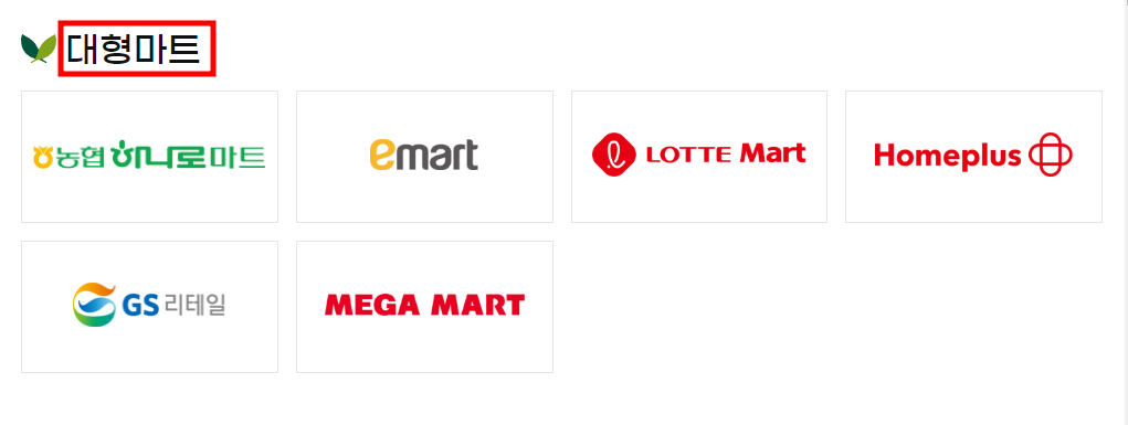또한, 오프라인마트 이용 시 구매 품목에 따라 30%까지 자동할인이 되며 구매 가능한 마트를 확인하셔야 합니다.
