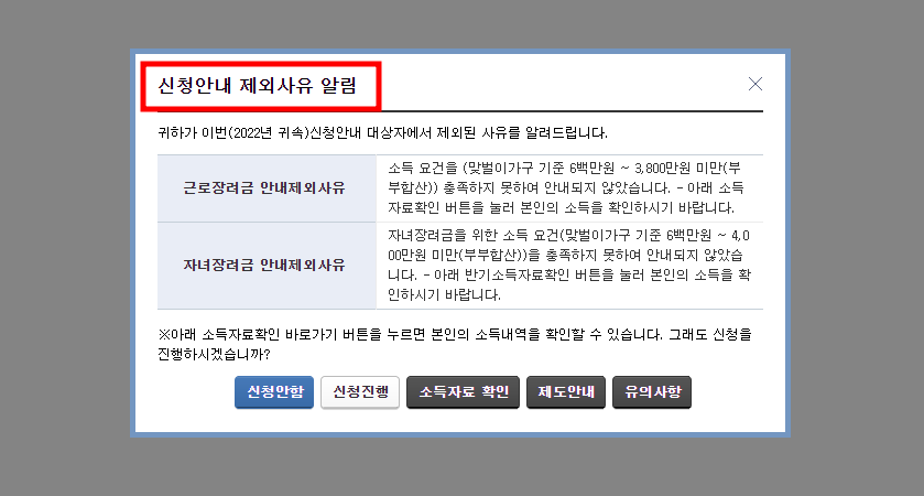 (참고)자녀장려금 해당없음 4000만 원 미만