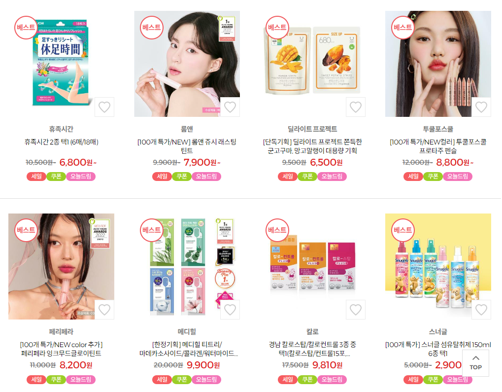 올리브영에서는 7일간의 세일기간 동안 100개의 특가상품도 선보입니다. 7일간 최저가에 도전한다고 하니 보고 가시면 좋을 듯 합니다. 최대 50%까지의 아이템이 있으며 1만원 이하템도 많으니 확인하시기 바랍니다.