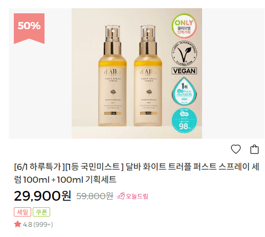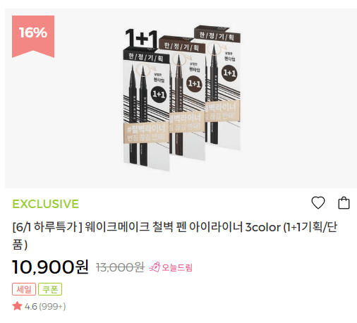 6월 1, 5, 7일 18시에 한정수량으로 선착순 특가를 판매한다고 합니다. 100원부터 최대 990원의 가격으로 정해진 상품을 구매할 수 있습니다. 배송비가 붙어도 상품비보다는 저렴하니 오픈런 하시어 선착순 특가에 참여하시기 바랍니다. 6월 1일에는 웨이크메이크 제품인 믹스 블러링 볼륨 블러셔를 990원(정상가 16,000원)에 판매합니다. 6월 5일 오전 10시에는 CKD 레티노콜라겐을 정상가 16,800원 상당의 제품을 100원에 판매 합니다. 그리고 같은 날 18시에는 히말라야 숙취해소 파티스마트 츄를 100원 판매하며, 6월 7일 수요일 오전 10시에는 구달제품인 살구 콜라겐 탄력 워시오프 마스크를 990원에 같은 날 18시에는 grn+ 갈색이 효소를 100원에 판매합니다. 알람을 맞추시고 오픈런 하시어 구매하시기 바랍니다.