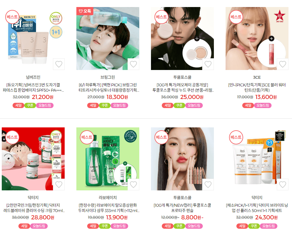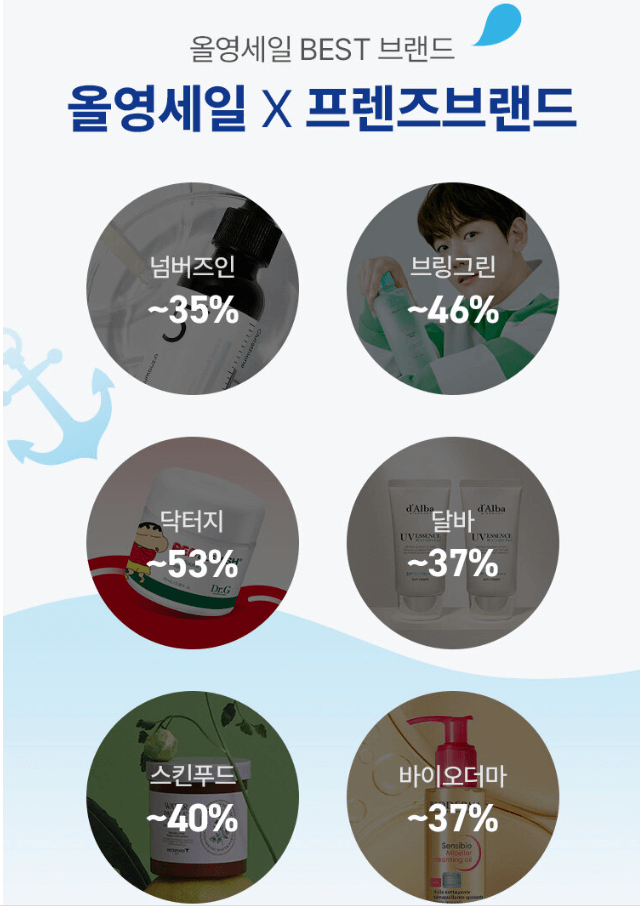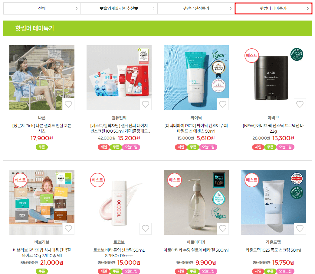 올리브영의 베스트 브랜드들도 세일전에 참여합니다. 더운 여름이 시작되었는데 이번 기회에 가족 모두 사용할 수 있는 썬크림 제품을 장바구니에 담아 보겠습니다.