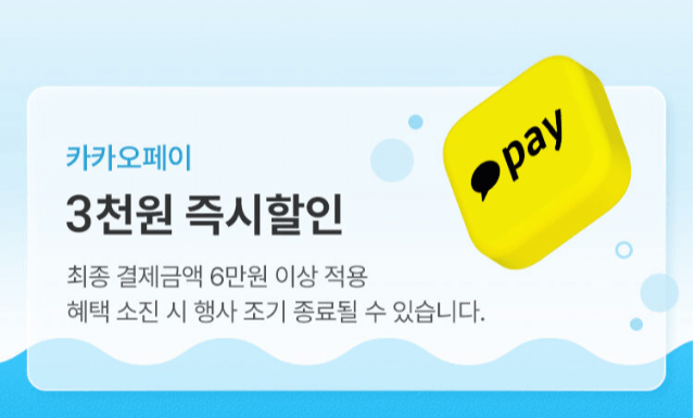 이왕 구매하는거 카카오페이로 결제하셔서 3천원 즉시 할인을 받으시기 바랍니다. 최종 결제금액 6만원 이상부터 적용되며 혜택 소직 시 행사가 조기 종료될 수 있으니 고민은 배송만 늦출 뿐, 미리 구매하시어 혜택을 누리시기 바랍니다. 이것도 앱에서만 적용되니 아직도 앱을 설치하지 않으셨다면 상단 QR코드로 설치하시기 바랍니다.