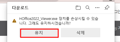 ✔ 아래와 같이 다운로드를 클릭하면 다운로드를 할 것인지를 묻는 창이 나오면 유지를 클릭해 줍니다.