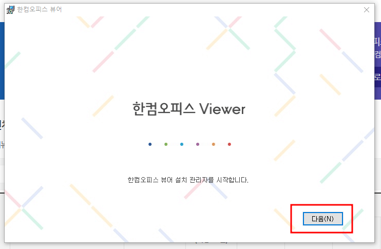 ✔ 한컴오피스 뷰어 설치 관리자가 시작됩니다. 다음을 누르시고 동의한 후 다시 다음을 눌러주세요.