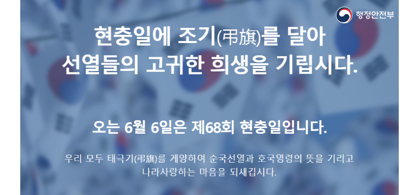 오늘은 6월 6일 제68회 현충일입니다 오늘 포스팅에서는 현충일의 정의와 개설 유래, 국경일의 의미 등에 대해서 알아보도록 하겠습니다.