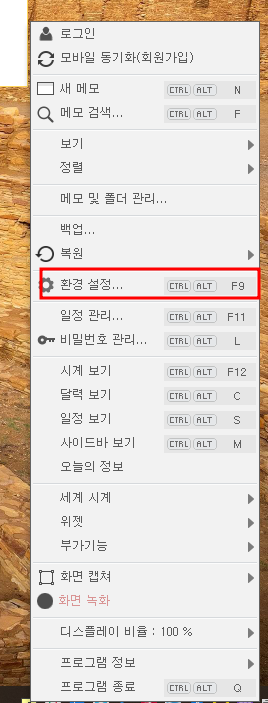 ✔ 아래와 같이 작업표시줄의 에스메모 아이콘에 마우스 커서를 대고 마우스 오른쪽 버튼을 누르면 환경 설정을 찾을 수 있습니다. 환경 설정을 눌러보면 다양한 기능이 있는데 에스메모 사용의 편리함을 더욱 극대화시킬 수 있습니다.