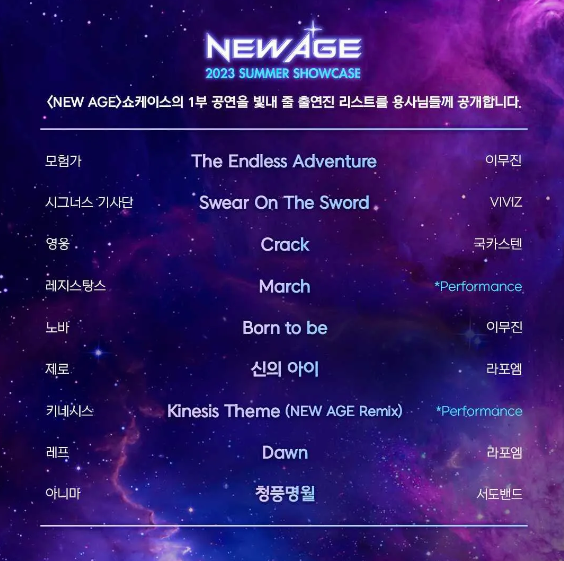 메이플스토리 여름 쇼케이스가 열렸습니다. 'NEW AGE(뉴 에이지)'라는 제목으로 열고 메이플스토리가 앞으로 펼쳐나갈 새로운 시대를 예고했다고 합니다. 이 날 쇼케이스에 방문한 2700여 명의 관객과 전국 14곳 CGV 상영관에 참가한 사람들까지 약 5000명의 사람들이 참석했다고 합니다. 또한 동시 송출을 진행한 유튜브와 트위치 채널에서도 7만 5천 명 정도의 사람들이 실시간으로 참여했다고 합니다.
