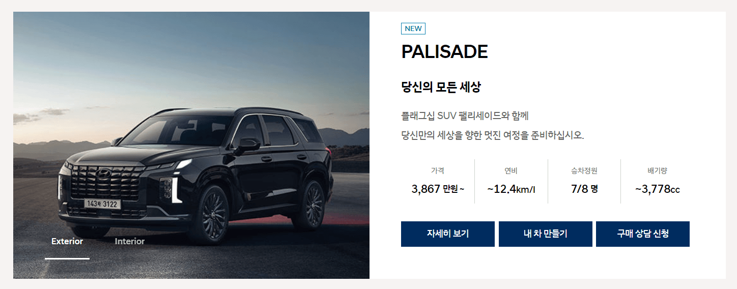 현대자동차의 대형 스포츠유틸리티차량 팰리세이드가 상품성을 대폭 개선하여 연식을 변경한 모델을 출시한다고 합니다. 모델이름은 2024 팰리세이드로 스페셜 트림 르블랑과 올 블랙의 콘셉트로 디자인화 하여 특화된 사양으로 선보인다고 발표하였습니다. 오늘은 팰리세이드 캘리그래피 블랙 에디션에 대해 정리해 보도록 하겠습니다.