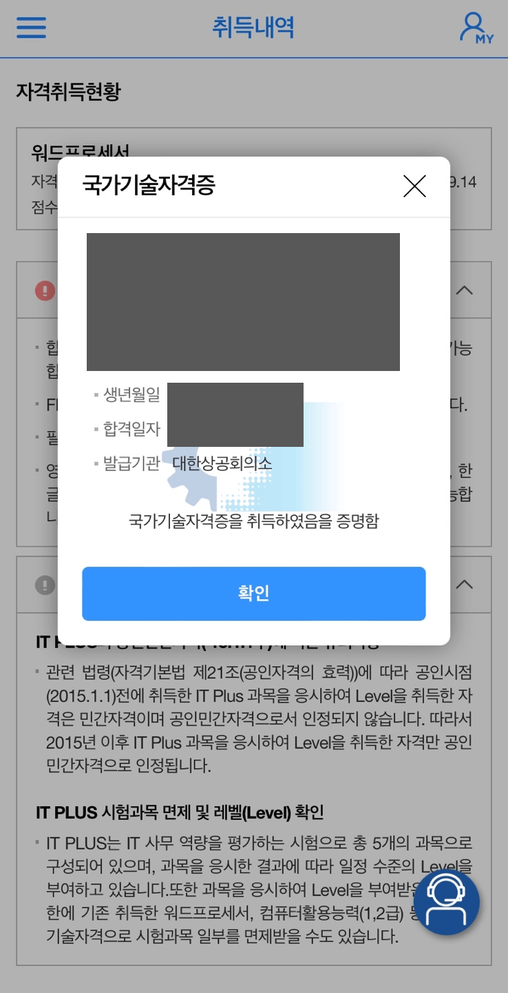 ✔ 자격증을 조회하기 위해서는 개인정보를 확인해야하기 때문에 회원가입을 먼저 하셔야 합니다. 모바일에서 확인하시는 분은 아래 링크를 클릭하시어 앱을 설치하시기 바랍니다.