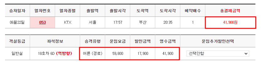 대한민국 만 65세 이상의 고령자로 KTX 예매 홈페이지 또는 KTX 예매 어플 코레일톡에서 예매 시 경로할인을 선택하고 주민등록증 또는 본인을 확인할 수 있는 신분증을 지참하면 아래와 같이 KTX 요금의 30%를 할인 받을 수 있습니다.