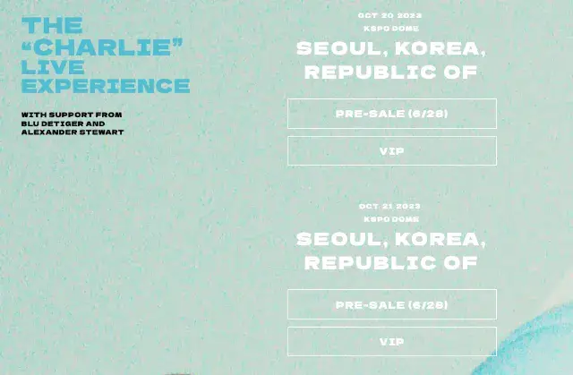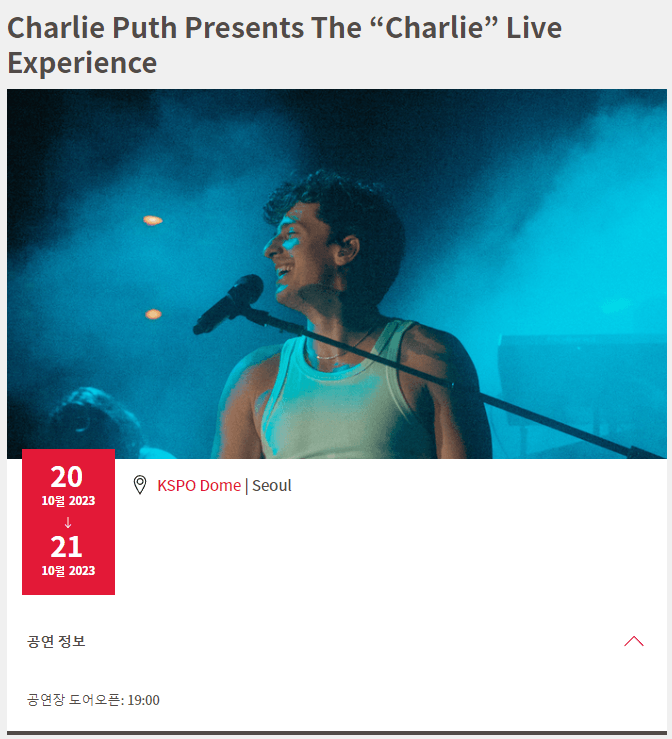 한국에서 많은 사랑을 받고 있는 찰리푸스가 서울에서 공연을 한다는 소식입니다. 방탄소년단의 팬이라고도 밝히고 2018년엔 방탄소년단 정국과 합동무대도 펼쳤었죠. 이번 내한 공연은 3번째로 5년 만에 진행된다고 합니다. 오늘부터 시작되는 티켓팅에 꼭 성공하시기 바랍니다.