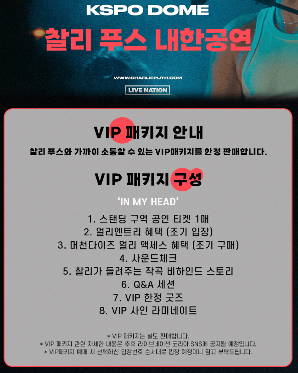VIP 패키지는 찰리 푸스와 가까이 소통할 수 있는 패키기로 한정 판매라고 합니다.