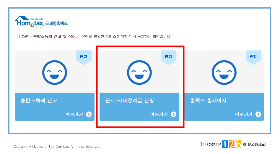 이것도 저것도 못하겠다 싶으시면 지원금 상담센터에 전화해서 신청대행을 요청합니다. 상담센터는 정기 근로장려금 신청기간인 5월과 반기 근로장려금 신청기간(3월, 9월)만 운영된다고 합니다.