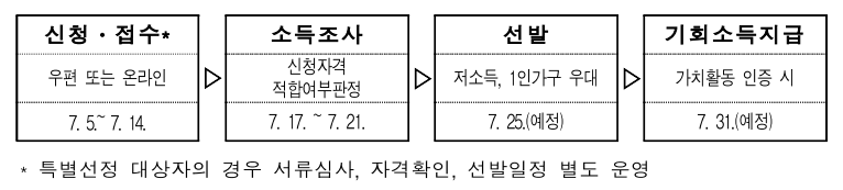 - 장애인 기회소득 지급신청서 제출(신청서, 통장사본 1회 제출)